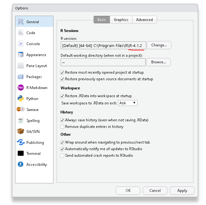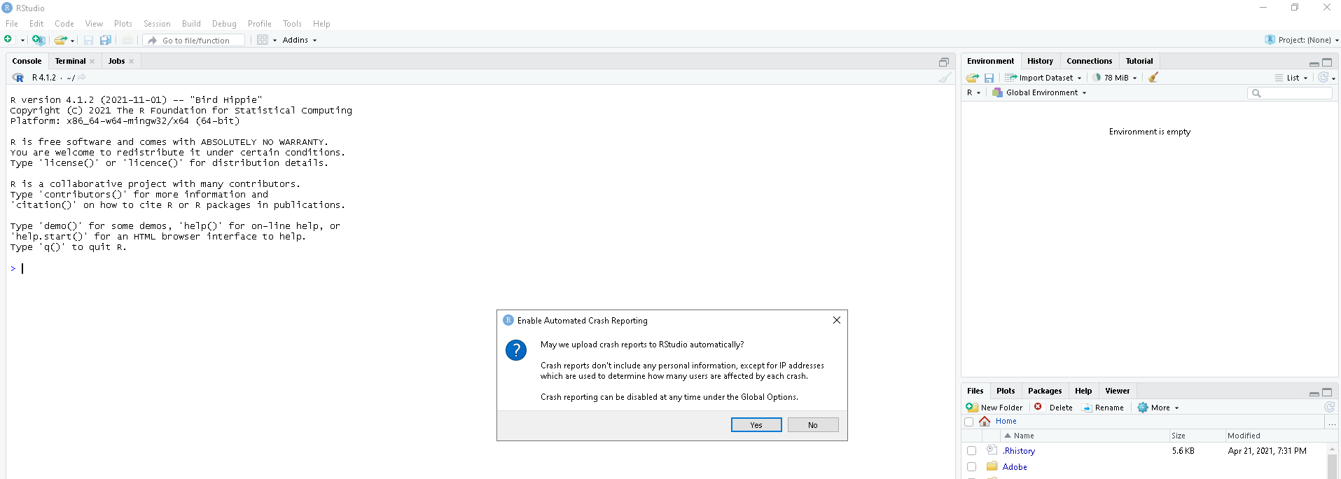 Click no to the popup. Click on Tools (at the top) —> Global Options —> General, now make sure it’s pointed to the correct installation path for where you installed R.